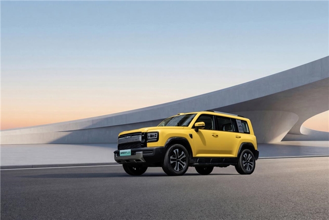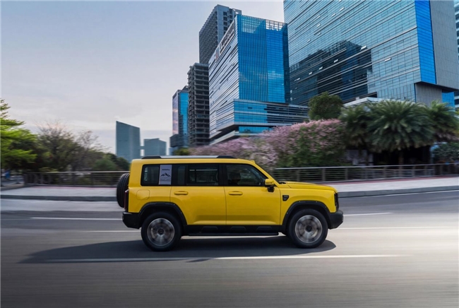 晶钻黄与猛龙PLUS的“方圆之道·棱角美学”,堪称天作之合。猛龙PLUS的车身,本就带着硬派的基因:笔直的“天工脊”腰线、“磐石切面”轮眉、垂直车尾与方正前脸——每一处线条,都在诉说着力量。