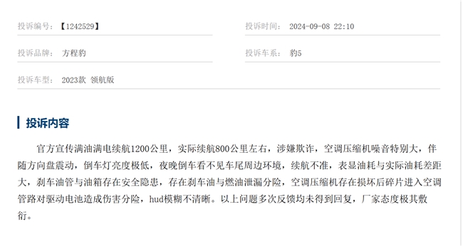 两车能耗角度对比,先说结果,2024款哈弗猛龙油耗更低。根据官方数据,2024款哈弗猛龙的WLTC馈电油耗为6.09L/100km、综合油耗为1.15L/100km、电耗为22.8kWh/100km;方程豹豹5的WLTC馈电油耗为7.8L/100km、综合油耗为1.81L/100km、电耗为24kWh/100km,但由于方程豹豹5自重多了755kg,相当一辆小型摩托车,实际用车中能耗甚至可能更高。在今年某权威平台的测评中,2024款哈弗猛龙亏电油耗低至7.82L/100km,方程豹豹5百公里亏电油耗却高达10.06L,这一数据无疑显得后者力不从心。