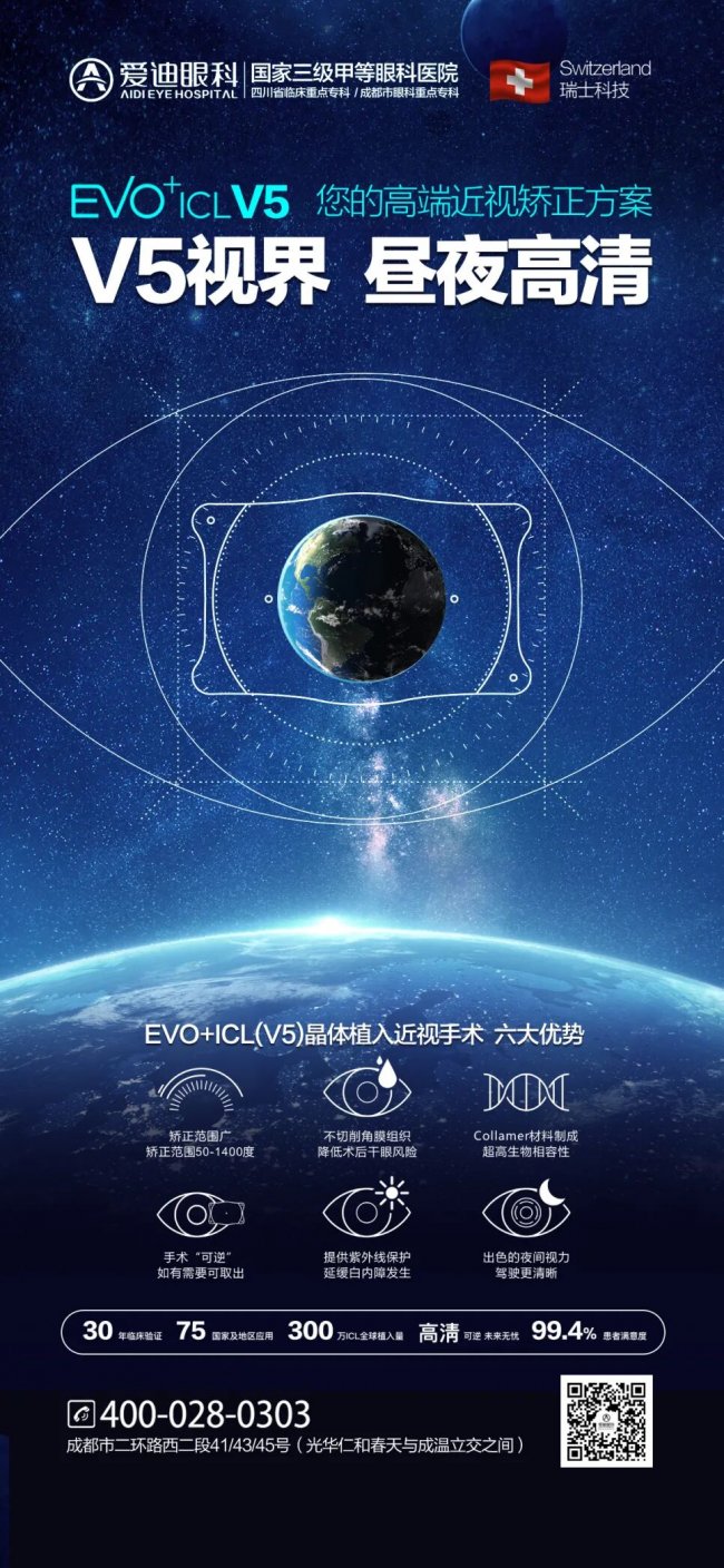 近日,新一代EVO+ ICL (V5)晶体正式面市,为众多近视患者带来了全新的视觉矫正体验。成都爱迪眼科医院获批EVO+ ICL (V5)首批临床应用合作中心,成为国内率先开展V5晶体植入手术的医疗机构,近期手术正火热预约中。